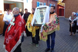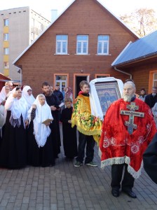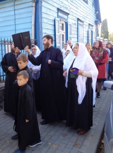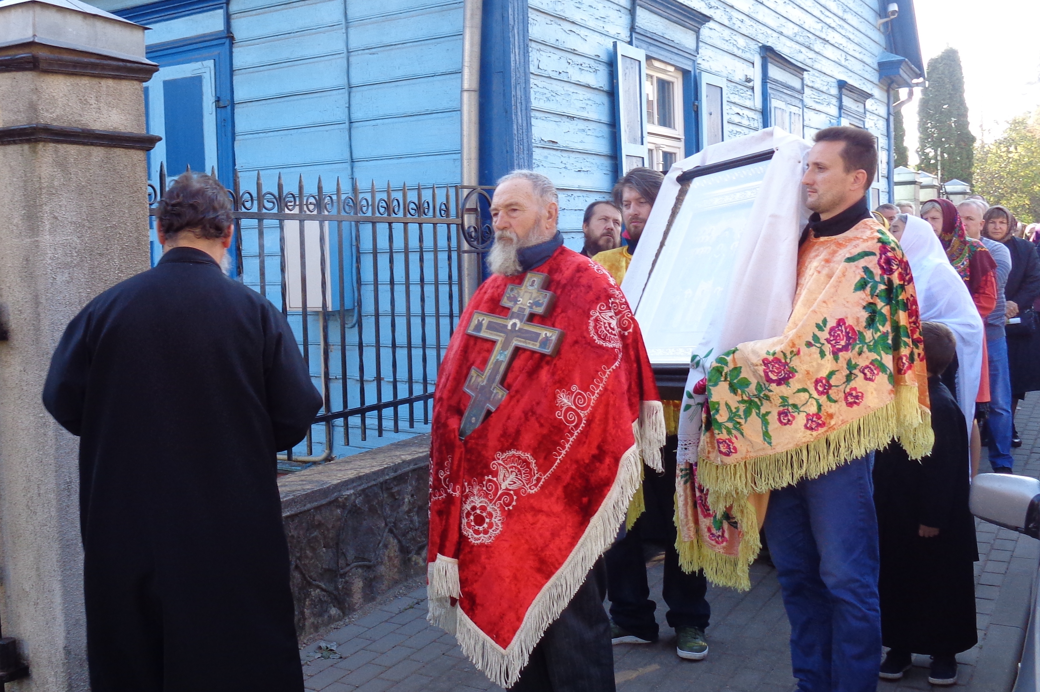 Назавтра, в сам праздничный день, храм был переполнен, — как в давние времена. Сотни свещей сияли перед намоленными несколькими поколениями иконами… Причетницы в белых — «пасхальных» — платах душевно исполняли знакомые песнопения… Затем состоялся традиционный Крестный ход с выносом более чем столетней иконы Покрова Пресвятой Богородицы и пением торжественных величаний и стихер празднику… Участники процессии впервые прошли по только что вымощенному брусчаткой двору…Колокольный звон далеко разносился над сияющим осенним золотом городом…