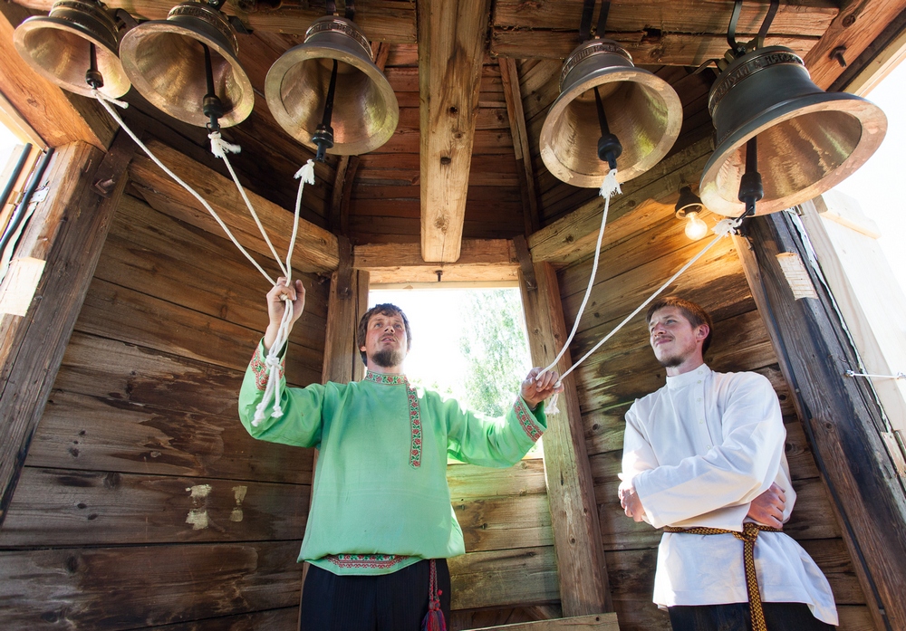 Затем присутствующие распределяются полукругом по двору так, чтобы в центре оказались колокола. Наставники поочередно, под пение молитв, освящают колокола. Взволнованные лица, даже слёзы в глазах местных жительниц: такого торжества здесь не бывало!
