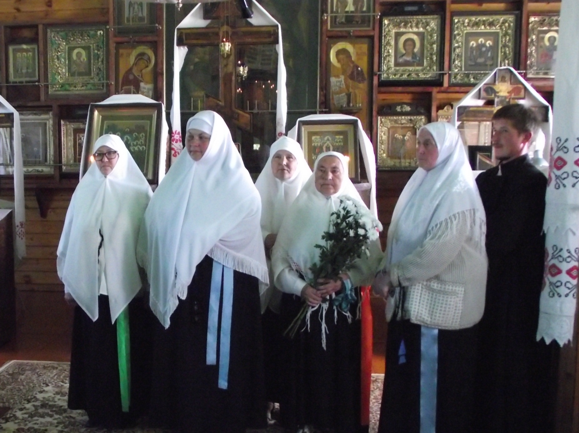 Клирошанки уже здесь. Белые большие платки покрыты по-старинному – низко на лоб до бровей, черные сарафаны перепоясаны длинной яркой лентой – редкий ныне местный обычай.