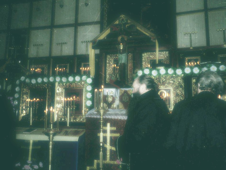 …Чудом исполненный снимок в полумраке молебна — виден еще полупустой иконостас …