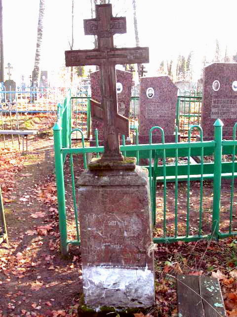 Вот стела из песчаника с двойным рельефным крестом, где погребены Никита и Ирина ,умершие в марте 1919 года — «Подарок от сына Григория Павловича из деревни Виселова» Есть и стела с тройным крестом над прахом Ирины и Андрея Артемьевых, скончавшихся в 1936 и 1938 годах