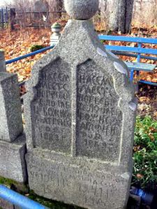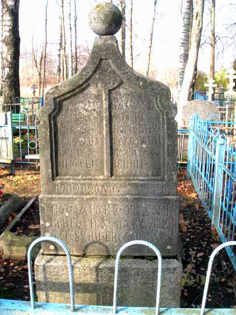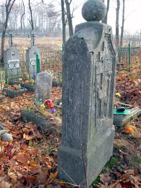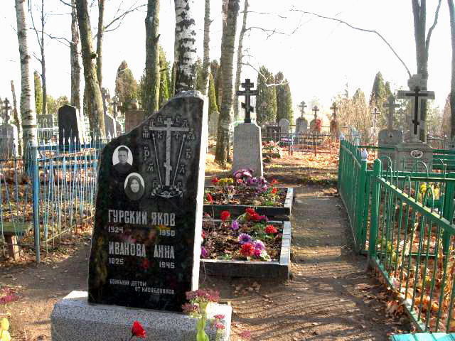 На ней под не совсем каноничными символами Голгофы – загадочные буквы ТК. Нельзя пройти мимо небольшого современного памятника черного полированного камня с тщательно выгравированным восьмиконечным крестом. На нем имена: Гурский Ияков (1924-1950) и Иванова Анна (1825 (!)-1945). Две фотографии-молодого парня и старой женщины в темном платке . Внизу-неповторимая эпитафия: «Божьим детям от наследников». 120-летняя бабушка и двадцатилетний правнук?