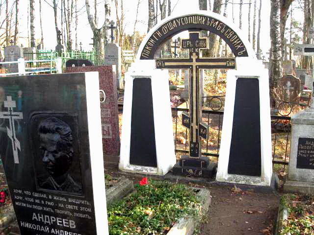 Однако самым примечательным семейным мемориалом данного (и не только) кладбища являются «могилки» одного из наиболее древних местных семейств – Андреевых. Мемориал расположен в южном конце центральной поперечной аллеи.