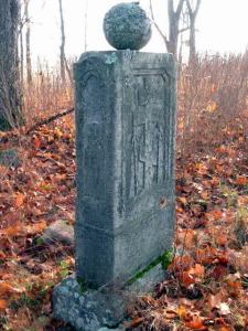 Интересны, возможно, даже уникальны на этом кладбище стелы второй половины 19 века. Таких массивных, до 1.8м в (современной!) надземной части стел насчитывается около 15. Большинство из них являются монолитами — песчаниковыми плитами прямоугольной в целом формы. Такая плита обычно расширяется книзу. Верхний же край лишь в одном случае представляет прямую плоскость, на середине которой лежит каменный шар. В остальных случаях верхние грани срезаны наискось или закруглены. Некоторые памятники увенчаны изящной волнистой аркой, иногда, опять-таки с каменным шаром.