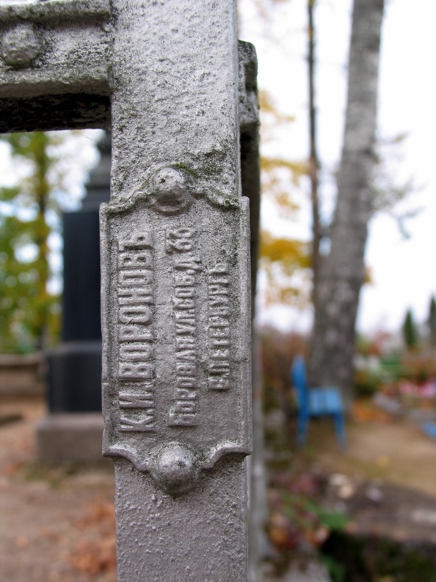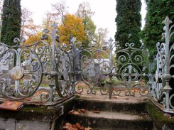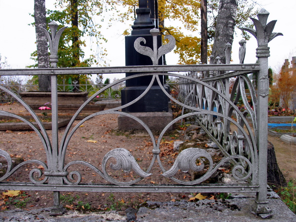 Нельзя не восхититься и уникальными металлическими оградами на некоторых семейных участках. Часть из них изготовлена аж в Петербурге в мастерских К. И. Воронова…